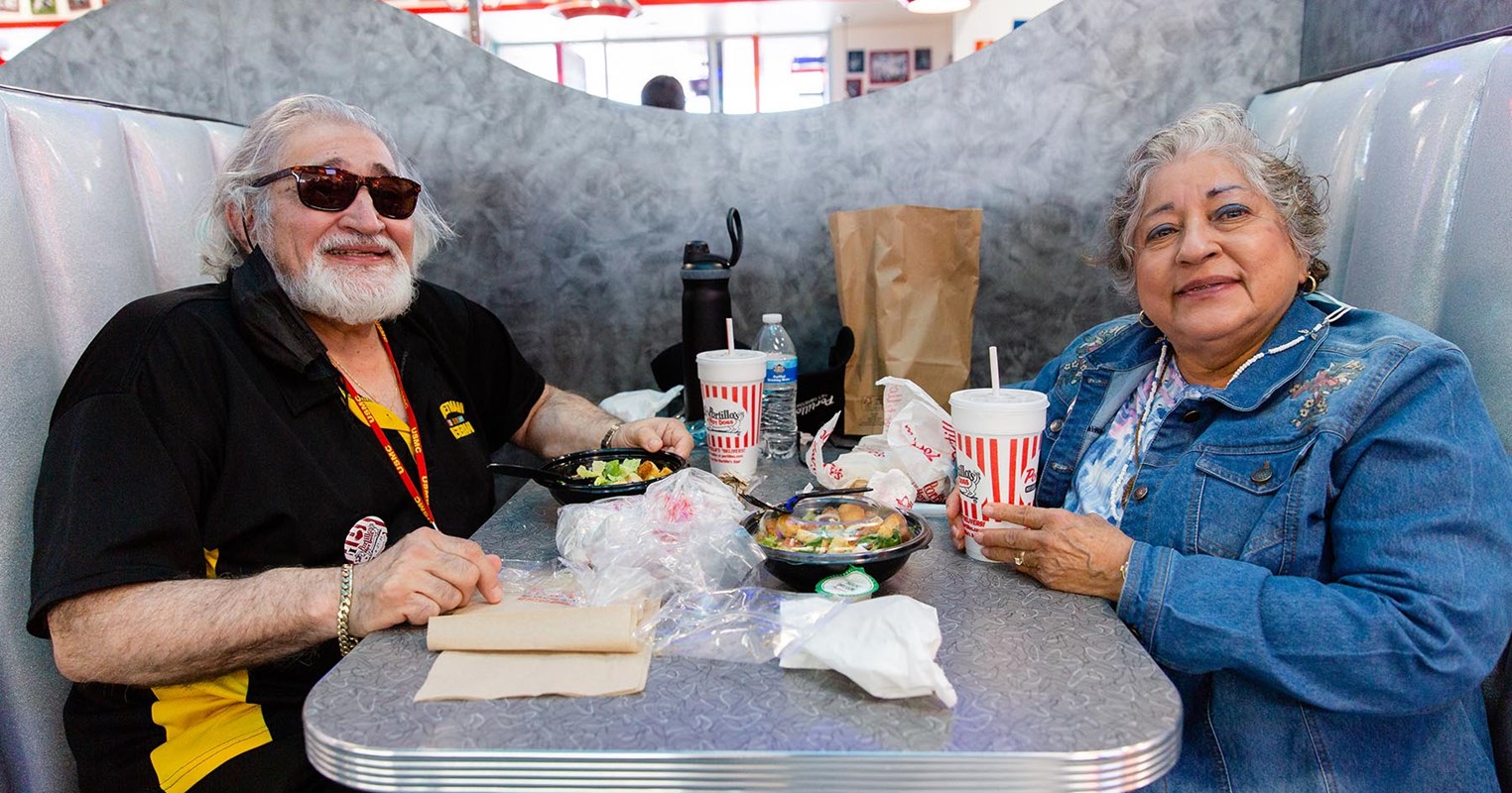 Safe and socially distanced, Portillo's fans were able to enjoy their food inside the new '50s themed restaurant, complete with an enormous Portillo's guitar propped on the ceiling. Diners also utilized the restaurant's drive-thru and curbside pickup services to eat from the comfort of their homes or picnic-style in their cars.